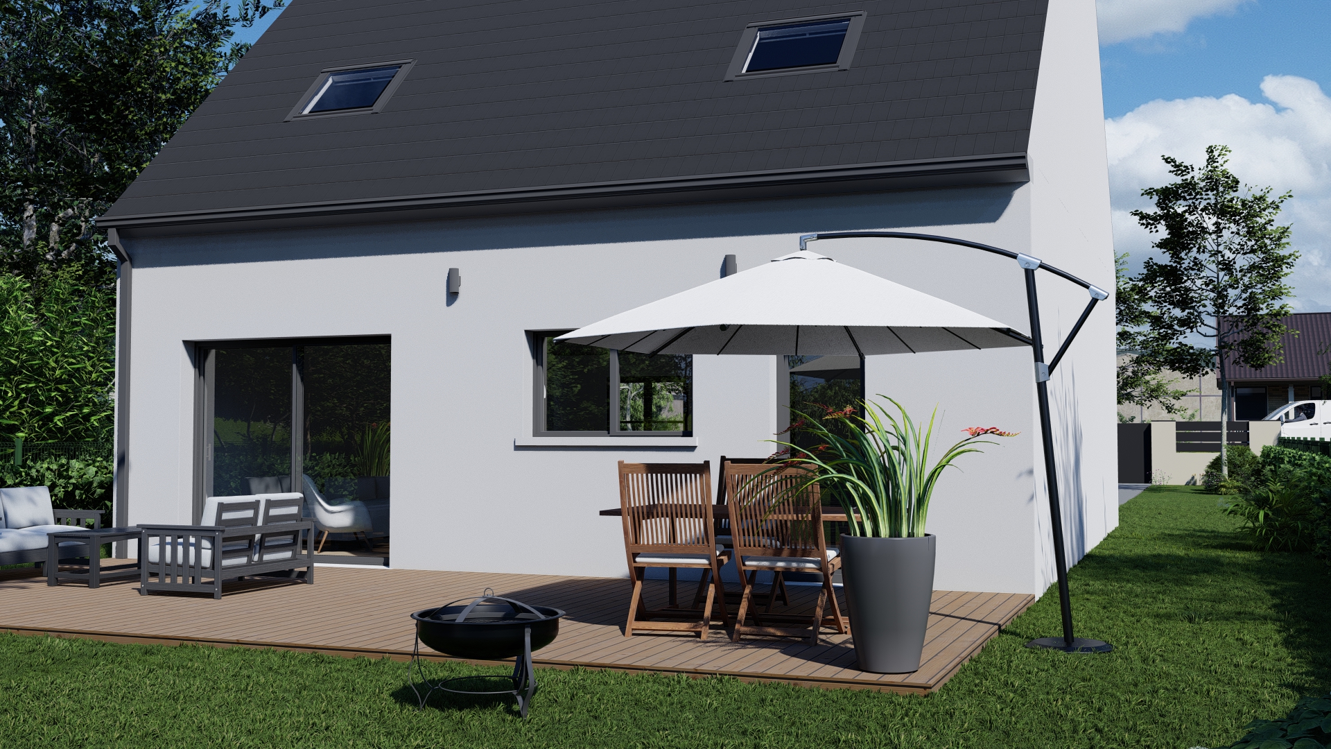 Son architecture associe tradition revisitée, confort moderne et performance énergétique, répondant pleinement aux attentes actuelles en matière de construction de maison familiale.