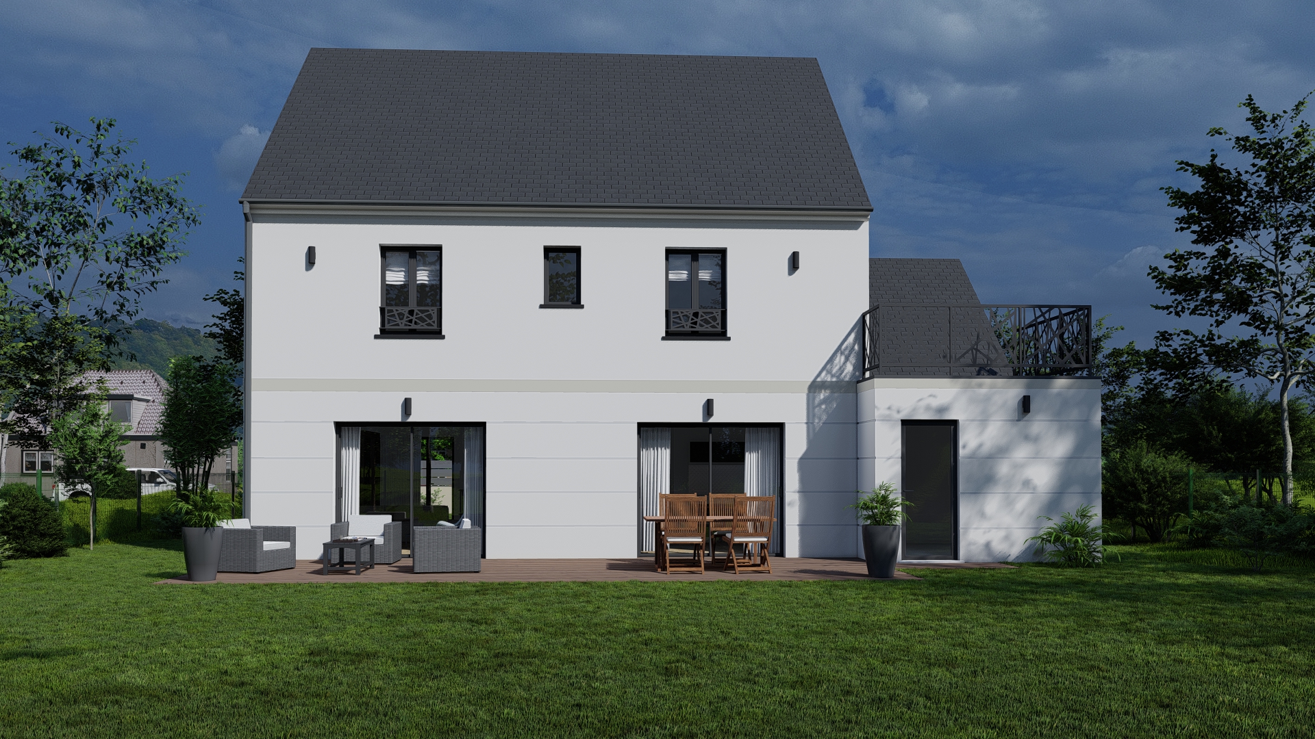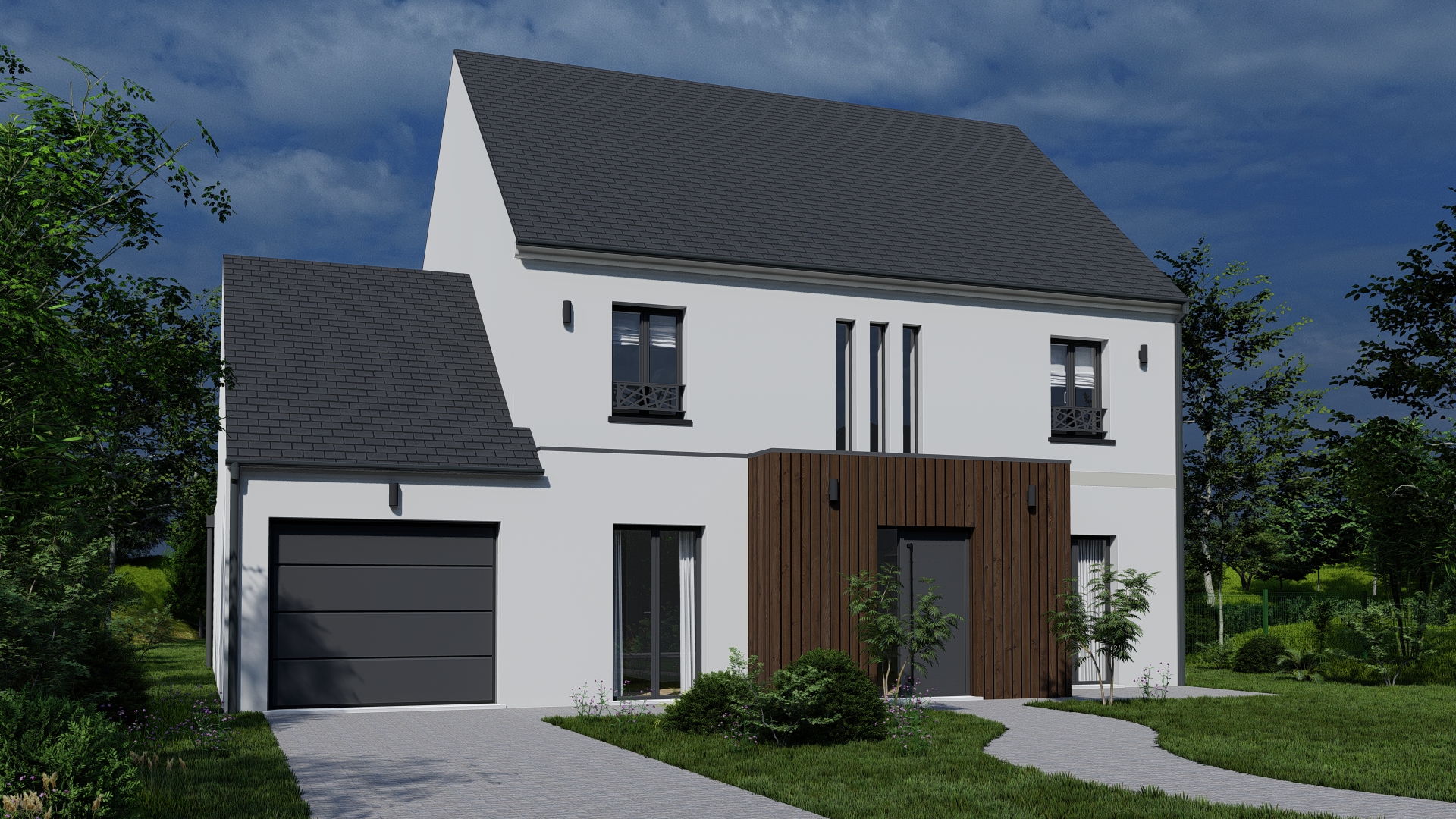 Le modèle SYMPHONIE est une maison R+1 (rez-de-chaussée + étage) 100 % personnalisable, développant près de 154 m² habitables. Pensée pour répondre aux exigences de confort moderne, cette maison familiale se distingue par ses volumes généreux, sa luminosité naturelle et une circulation intérieure fluide.